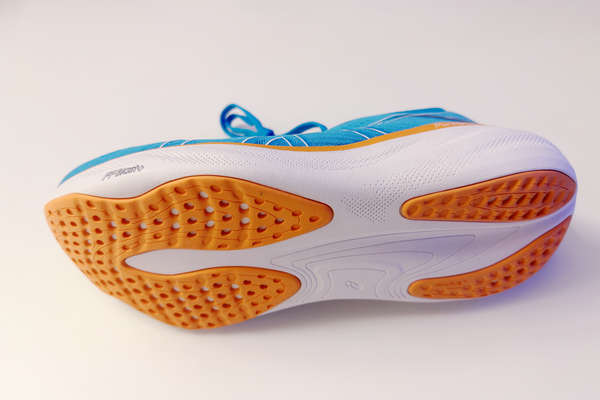 Remarquez l’allongement notable à l’arrière de la semelle intermédiaire ainsi que son épaisseur. Une tendance prise par de multiples fabricants de chaussures de running (route comme trail) ces dernières années, Hoka ayant été sans doute la marque qui a le plus influencé ce virage. La part de cette nouvelle mousse « FF Blast Plus Eco » utilisée pour composer la semelle intermédiaire de ces nouvelles Gel-Nimbus 25 serait 20% plus importante que la quantité de mousse présente dans les précédentes chaussures. Autre nouveauté dans la conception de ces chaussures, une largeur médiane plus grande de la semelle extérieure. Les chaussures sont destinées à une foulée neutre, leur drop est de 8 mm et elles sont destinées autant à des entraînements peu fréquents (soit une séance par semaine) qu’à une pratique plus importante, sur des distances moyennes ou longues.